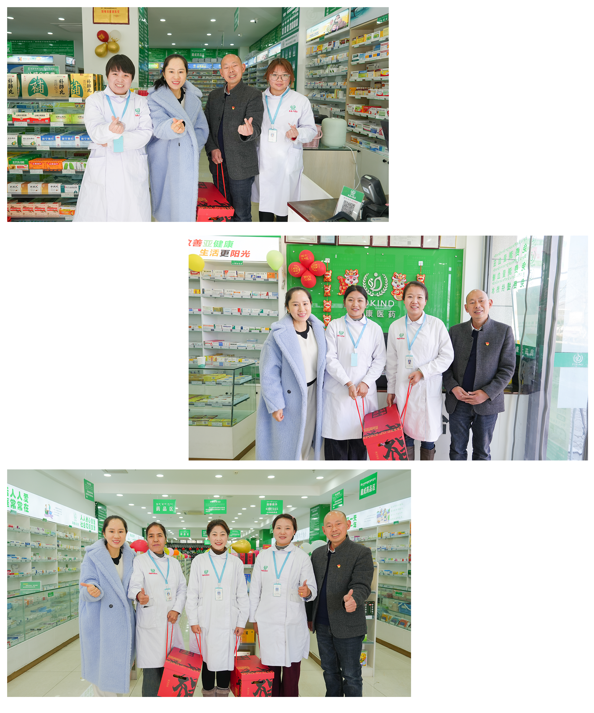 2025年1月29日,大年初一上午,西藏阜康醫(yī)藥發(fā)展有限公司的總經(jīng)理劉瀟瀟踏上了慰問(wèn)之旅。她走訪了阜康大藥房各分店,向春節(jié)期間依然堅(jiān)守崗位的一線員工們送去了新年的問(wèn)候和溫暖的關(guān)懷。